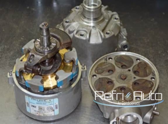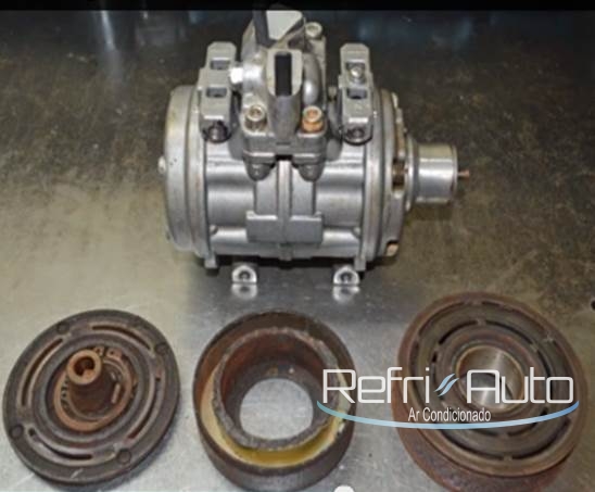 Devido a oxidação dos componentes internos, Houve o travamento do compressor e a queima do conjunto de embreagem.