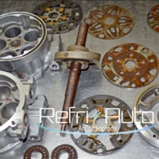 Estrutura interna do compressor inteiramente comprometida devido a oxidação.